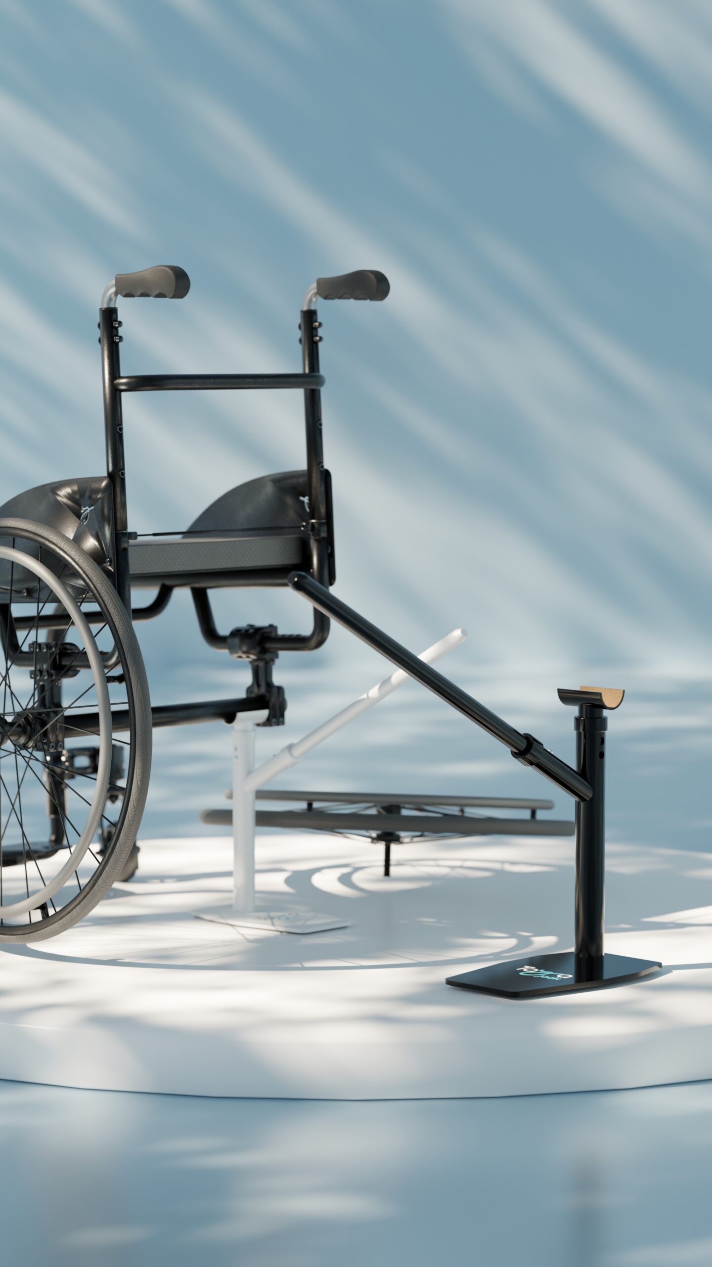 - Entwickelt für sicheres einseitiges Anheben des Rollstuhls