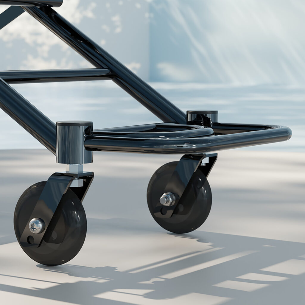 Gefertigt aus ultrarobustem Stahl – faltbar, mobil und platzsparend. Ideal für Reisen, Einkaufstouren und Hausbesuche.