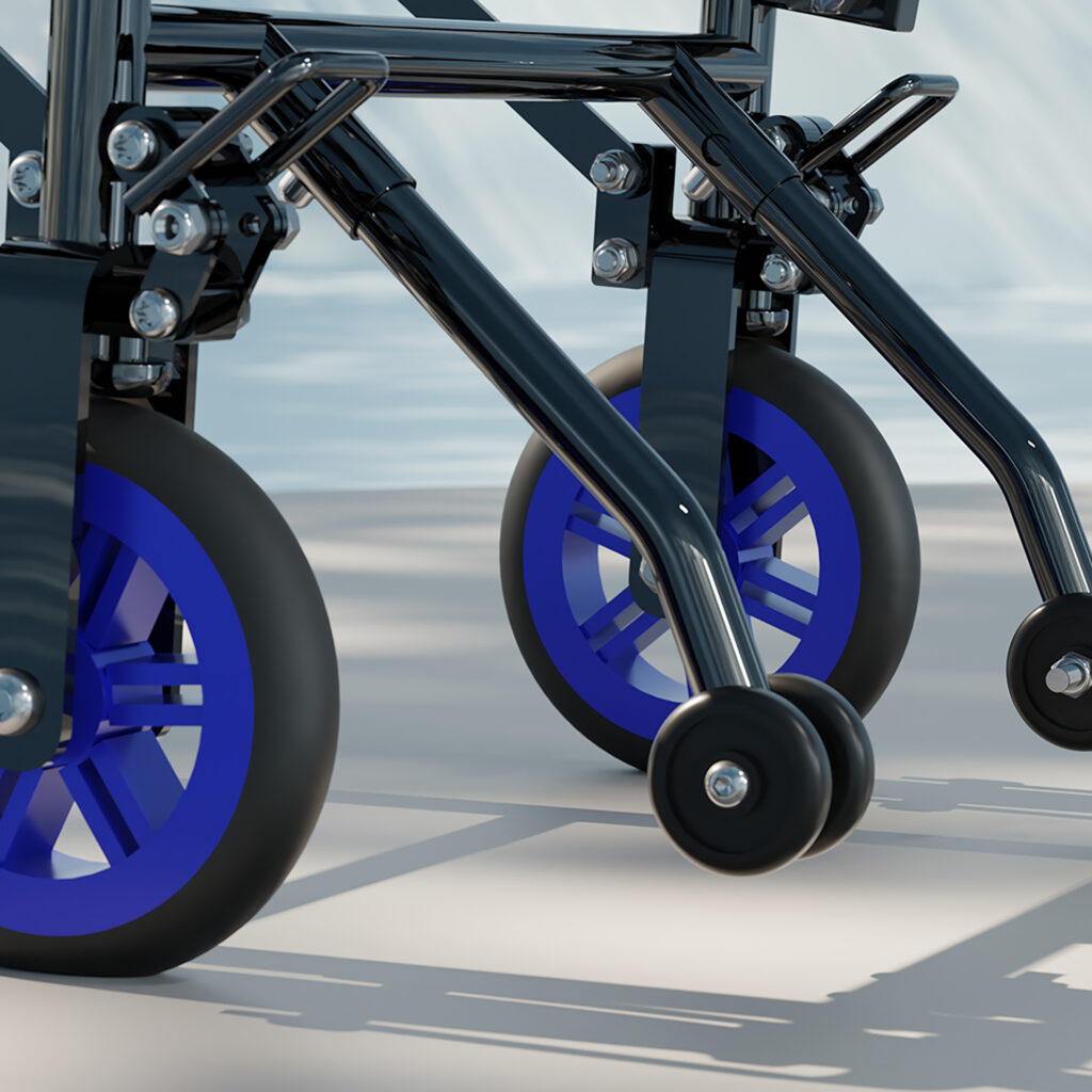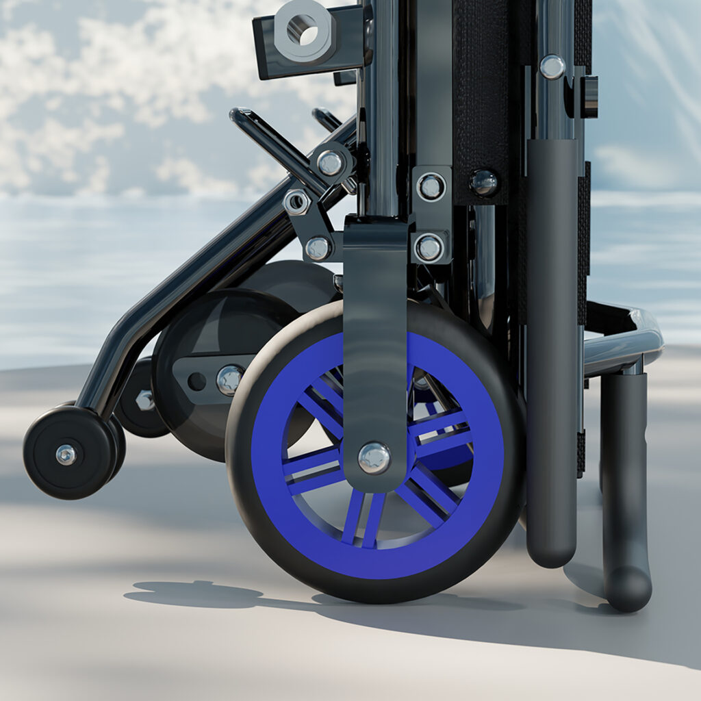 Durch sein robustes Stahlgestell und die kompakte Faltfunktion lässt sich der Rollstuhl einfach transportieren und platzsparend verstauen – perfekt für Nutzer, die flexibel und unabhängig bleiben möchten.